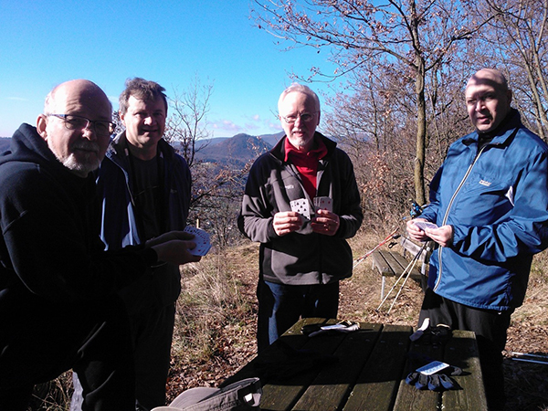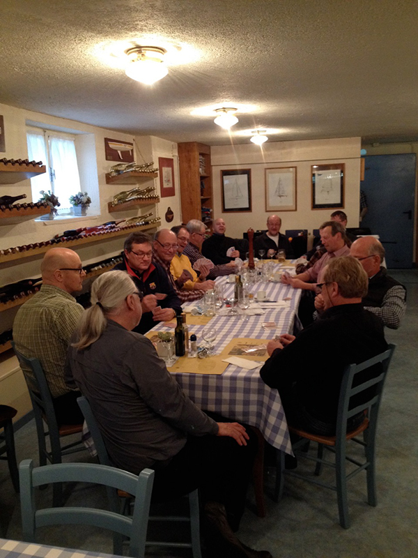 Gardan skruuvarit lounastauolla nauttimassa italian herkuista ja korttien lumosta.